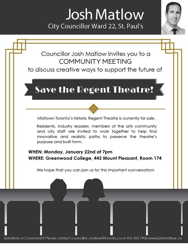 Town Hall Meeting to Save the Regent Theatre View Larger Image Josh Matlow2018-07-11T14:30:00+00:00 Leave A CommentPlease leave a message of support for residents and frontline staff.Comment Save my name, email, and website in this browser for the next time I comment.