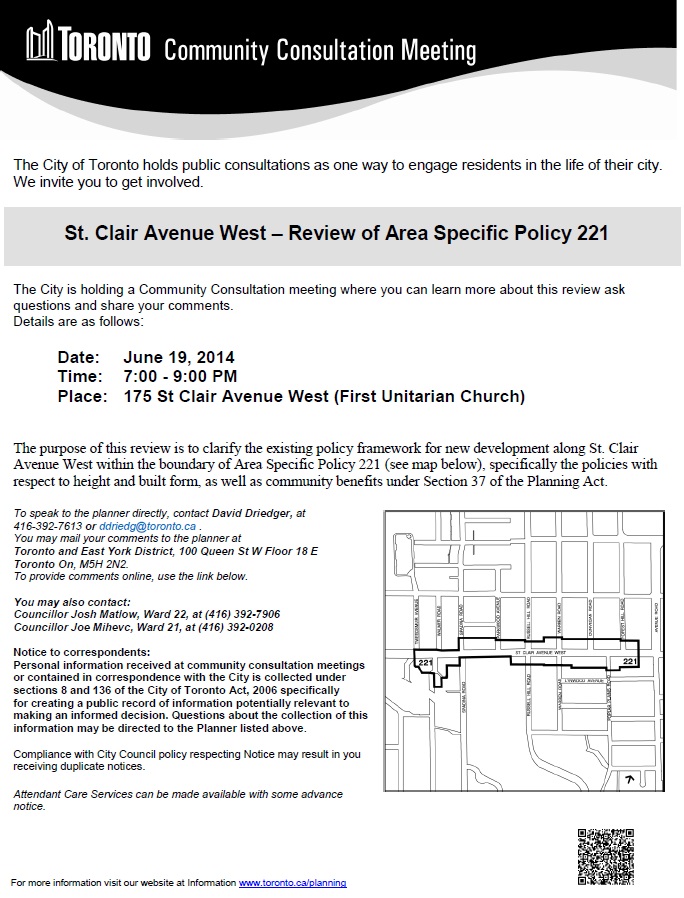 Community Consultation Meeting: St. Clair Avenue West – Review of Area Specific Policy 221 View Larger Image Josh Matlow2017-05-29T19:24:06+00:00 Leave A CommentPlease leave a message of support for residents and frontline staff.Comment Save my name, email, and website in this browser for the next time I comment.