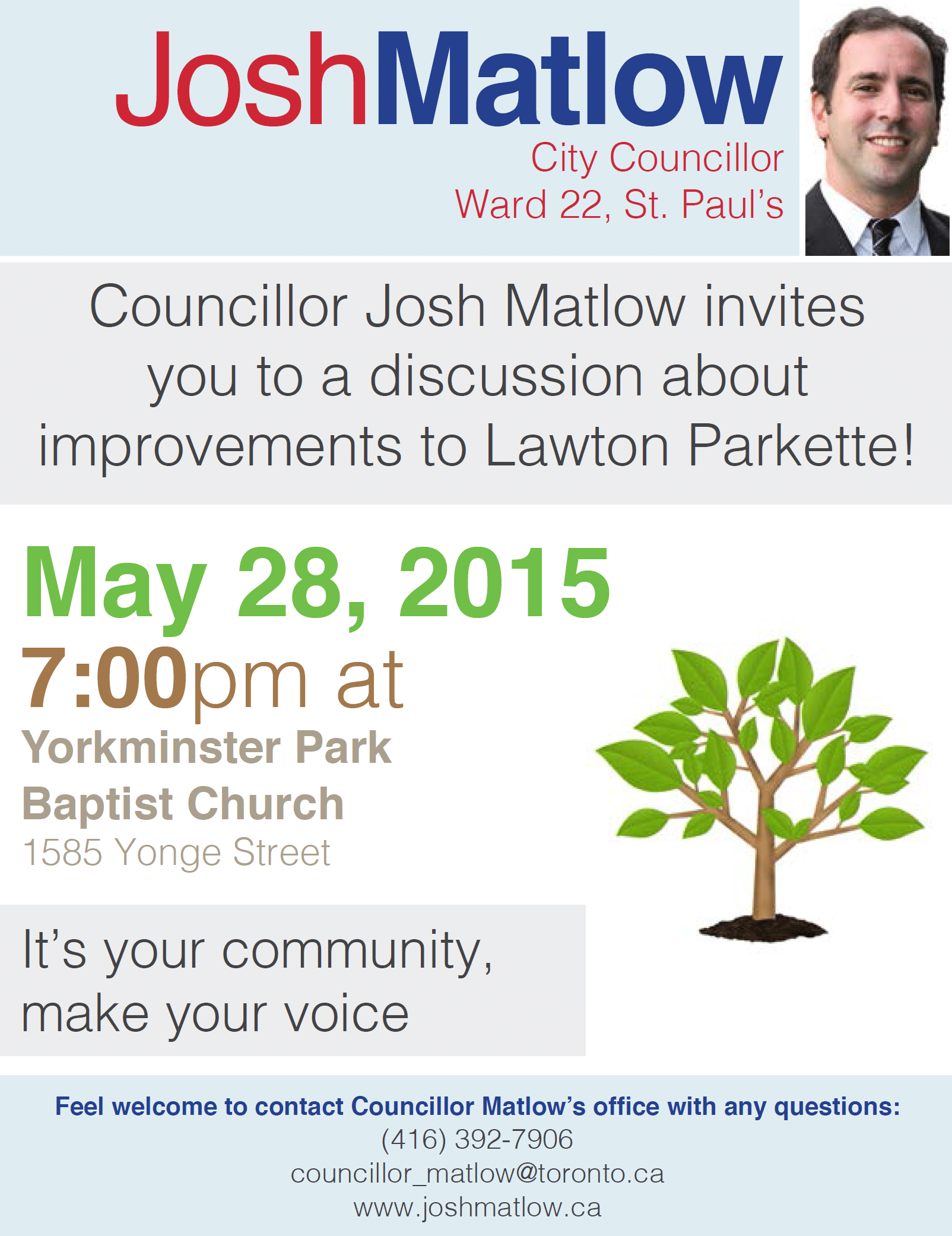 Lawton Parkette Public Meeting View Larger Image Josh Matlow2017-05-29T19:23:53+00:00 Leave A CommentPlease leave a message of support for residents and frontline staff.Comment Save my name, email, and website in this browser for the next time I comment.