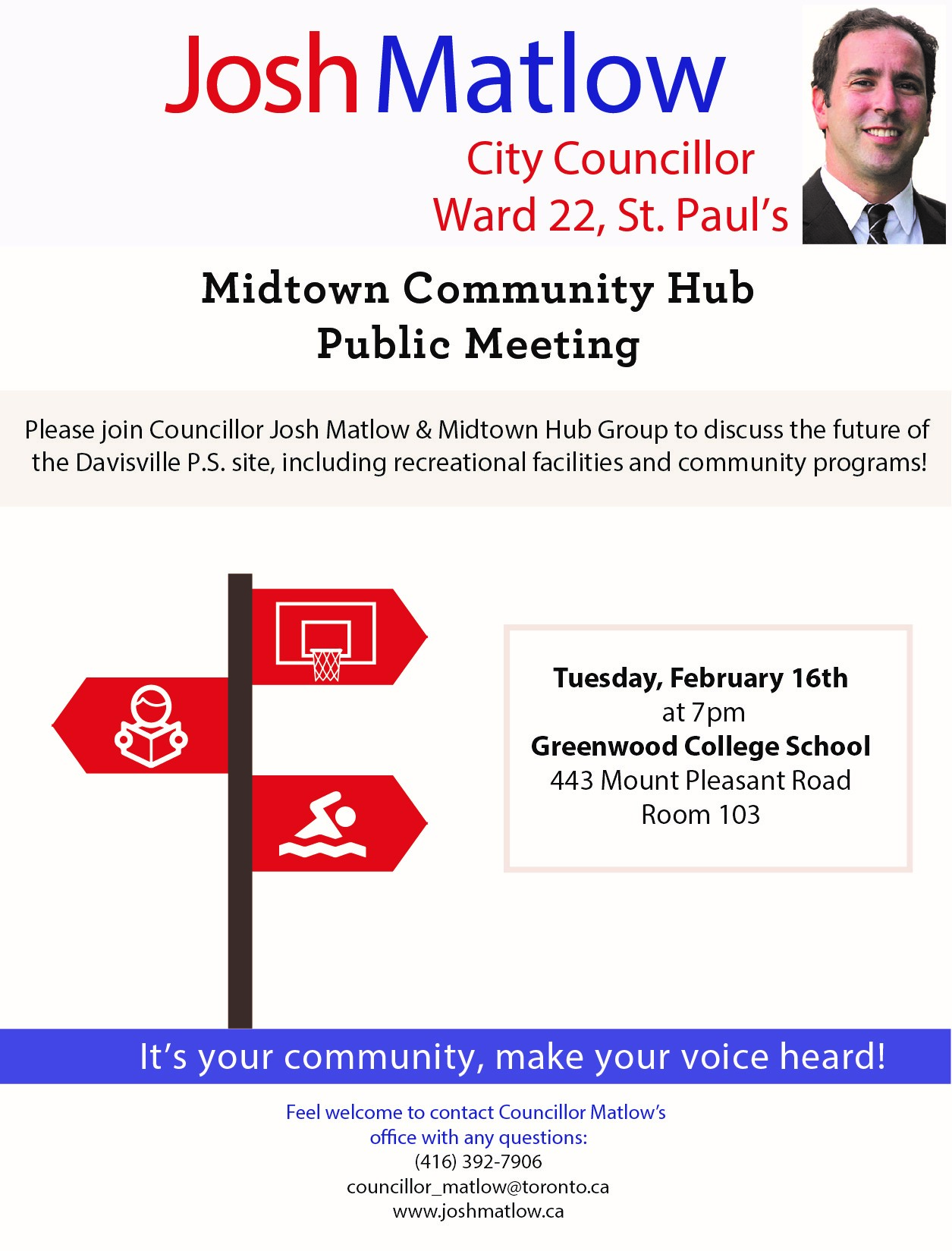 Midtown Community Hub Public Meeting View Larger Image Josh Matlow2017-05-29T19:23:47+00:00 Leave A CommentPlease leave a message of support for residents and frontline staff.Comment Save my name, email, and website in this browser for the next time I comment.